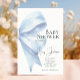 Elegant Dusty Blue Bow Watercolor Baby Shower Boy Invitation