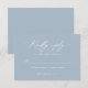 Perfect for a modern wedding, these calligraphy RSVP cards feature an elegant script on a dusty blue background.