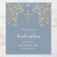 Elegant Dusty Blue Confirmation Gold Cross Wine Label