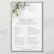 Modern, elegant bridal shower game "What's on Your Phone" featuring lush gray green botanical leaves and eucalyptus, and bordered in pale eucalyptus blue gray green. Personalize your questions in soft off-black, accented with beautiful modern hand lettered calligraphy. Part of a co-ordinated suite. View suite here: https://www.zazzle.com/collections/elegant_eucalyptus_green_botanical_bridal_shower-119330045467288535 Contact designer for matching products. Copyright Anastasia Surridge for Elegant Invites, all rights reserved.