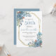 Elegant Dusty Blue Floral 50th Birthday Invitation