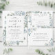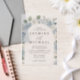 Create a stunning first impression with our elegant floral vellum wedding invitations, featuring your wedding details framed by an arched design of dusty blue and white roses, hydrangeas, and lush eucalyptus leaves. Set against a sheer vellum background, this sophisticated floral invitation adds a touch of romance to your special day. Perfect for spring or summer weddings, this dusty blue floral wedding invitation is the ideal choice for couples seeking a soft, elegant, and nature-inspired design.