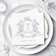 Elegant Dusty Blue Floral Crest Monograms Wedding Napkins