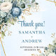 Add the perfect finishing touch to your wedding favors with this elegant watercolor dusty blue and white floral thank you tag, beautifully accented by a woven gold glitter frame. Soft blue blossoms, creamy white petals, and delicate golden tones combine to create a look that’s both romantic and sophisticated, ideal for modern, boho, or classic weddings.