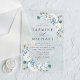 Invite your guests with elegance using our Elegant Dusty Blue Floral wedding invitations, featuring your wedding details framed in an oval design of dusty blue and white roses, hydrangeas, and lush eucalyptus leaves. Set against a transparent acrylic background, this beautiful floral arrangement adds a touch of romance and sophistication to your celebration. Perfect for spring or summer weddings, this dusty blue floral wedding invitation will captivate your guests and set the tone for your special day.