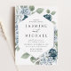 Elegant Dusty Blue Floral Frame Wedding Foil Invitation