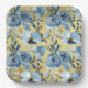 Elegant Dusty Blue Floral & Gold Square Party Paper Plates