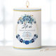 Elegant Dusty Blue Floral Inspirational Scripture Pillar Candle