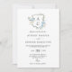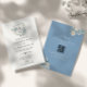 Delicate white and dusty blue floral monogram crest QR code all in one wedding invitation.