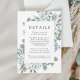 Elegant floral wedding details card featuring your wedding details framed by dusty blue and white roses, hydrangeas, lush eucalyptus leaves, and greenery. The dusty floral wedding details cards are perfect for your spring or summer wedding. Designed to coordinate with our Elegant Dusty Floral wedding collection.