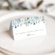 Elegant floral wedding place cards featuring dusty blue and white roses, hydrangeas, lush eucalyptus leaves, and greenery. The dusty floral wedding place cards are perfect for your spring or summer wedding. Designed to coordinate with our Elegant Dusty Floral wedding collection.
