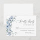 Perfect for an elegant wedding, these RSVP cards feature watercolor flowers and greenery in dusty blue colors.