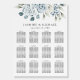 Elegant floral wedding seating chart featuring a top border of dusty blue and white roses, hydrangeas, and lush eucalyptus leaves and greenery. Personalize the dusty blue floral wedding seating chart with your names, wedding date, and guest names. The design coordinates with our Elegant Dusty Blue Floral wedding collection.
