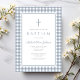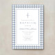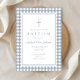 Elegant Dusty Blue Gingham Boy Baptism Invitation