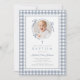 Elegant Dusty Blue Gingham Photo Girl Baptism Invitation