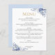 Elegant Dusty Blue Gold Floral Wedding Dinner Menu