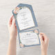 Elegant Dusty Blue Gold Peach Cream Floral Wedding All In One Invitation