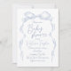 Elegant Dusty Blue Hand Drawn Bow Baby Shower Invitation