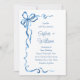 Elegant Dusty Blue Hand Drawn Bow Wedding Invitation
