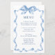 Elegant Dusty Blue Hand Drawn Bow Wedding Menu