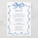 Elegant Dusty Blue Hand Drawn Bow Wedding Menu