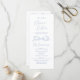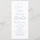 Elegant wedding program features hand drawn ribbon bow with modern handwritten script fonts in dusty blue, clean and simple. Great for modern romantic wedding, unique fun whimsical wedding, elegant casual wedding.
