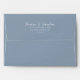 A minimalist boho light blue wedding envelope with return address. Which features simple dusty blue solid color . With with white handwritten calligraphy of the bride's and groom first names along with the personalized return address label . And customizable return address info..