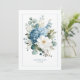 Invite your guests with breathtaking elegance using this sophisticated floral wedding invitation. The design showcases a stunning, painterly watercolor bouquet arranged beautifully against a clean white background. A magnificent dusty blue hydrangea cluster provides a lush focal point, perfectly complemented by a crisp, elegant white anemone or peony with a detailed golden-brown center. This exquisite arrangement is artfully interwoven with smaller delicate blue flowers, sprigs of dusty blue-green eucalyptus leaves, and subtle botanical accents, creating a fresh, romantic, and sophisticated feel. A minimalist, very thin blue border provides a clean frame for your event details. Perfect for sophisticated weddings (especially with a 'something blue' theme), this design is also ideal for elegant bridal showers, milestone birthday celebrations, anniversary parties, baby showers, or upscale garden events. This versatile design can also be adapted for sophisticated corporate galas, charity fundraisers, or elegant announcements requiring a touch of refined floral beauty.