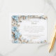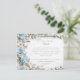Refined and romantic, this elegant wedding details card features an exquisite baroque-style gold frame adorned with cascading dusty blue and ivory hydrangeas. The floral embellishments are delicately arranged around luxurious golden scrollwork, evoking a classic European elegance with a modern twist. A small matching monogram medallion adds a personal touch, making this the perfect enclosure card for sharing important wedding details such as directions, accommodations, and itinerary updates. Ideal for formal weddings with a vintage, aristocratic, or blue-and-gold theme.