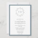 Elegant Dusty Blue Leaf Wreath Monogram Wedding Invitation