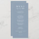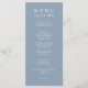A modern and elegant minimalist chic wedding light blue dinner menu. Which features chic template design of dusty blue solid background and white typography . And let's eat wording in elegant chic calligraphy. Grab it and make your wedding menu chic and classy.