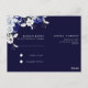 This elegant RSVP card features a beautiful floral design with dusty blue and navy blue roses and other blooms. This design is perfect for couples looking for a modern yet traditional touch for their wedding stationery.