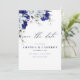 Elegant Dusty Blue Navy Floral QR Code Wedding Save The Date
