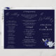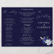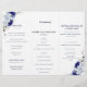 This elegant and stylish wedding program is the perfect way to keep your guests informed about the order of events during your ceremony. The program features a beautiful design of dusty blue and navy florals with a touch of gold, creating a sophisticated and elegant look. The front of the program includes the wedding couple's names and date, while the back features the ceremony order, party information, and a special unplugged ceremony request.