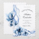 Elegant Dusty Blue Navy Flowers Wedding Invitation