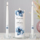 Elegant Dusty Blue Navy Flowers Wedding Unity Candle Set