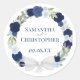 Elegant Dusty Blue & Navy Wreath of Roses Wedding Classic Round Sticker