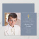 Elegant Dusty Blue Photo Boy First Communion Invitation