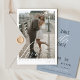 This elegant and simple dusty blue, black and white modern wedding save the date with a beloved Christian "We Love, because He first loved us - 1 John 4:19" bible verse over your favorite cover engagement photo and elegant minimalist save the date wedding details and design on the back including your wedding website in white over a solid soft dusty blue background is the perfect way to announce your big day! Easily personalize the text and upload your photo to make it uniquely yours. You may even edit / adjust placement of design components further, by clicking the blue "Edit using design tool" button at the bottom of the "Personalize This Template" window, then navigate to the "layers" tab in the left hand column of the edit screen, select the front or back side layer, then click on the element you would like to change with the toolbox on the right, and click the "done" button when finished ♥ Custom design and/or color requests and template questions are always welcome - click the "message" button or email: figandlilyco@gmail.com. Design is lovingly created by Fig and Lily Studios - sending blessings and thanks for being here with us! (Photo credit of our beautiful daughter's engagement/wedding: @laurenmargaretphotography)