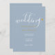 Elegant Dusty Blue Script Gold Heart Wedding Invitation