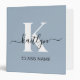 Elegant Dusty Blue Script Monogram 3 Ring Binder