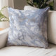 Add a touch of elegance to your decor with this unique throw pillow, featuring a faux marble pattern in dusty blue and white with silver faux foil highlights.