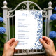 Complete your celebration with this Elegant Dusty Blue Toile Wedding Details Card. Designed with delicate blue botanical florals inspired by classic French toile, this insert beautifully organizes venue information, schedule, accommodations, and travel details in a refined and timeless layout. The soft dusty blue palette pairs perfectly with formal, estate, vineyard, and garden weddings, creating a cohesive and sophisticated stationery suite your guests will appreciate.