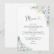 Elegant Dusty Blue Wedding Menu is an elegant and modern wedding menu designed in a soft dusty blue tone that exudes calm sophistication. The clean and refined layout creates a harmonious and cohesive look for the wedding table setting. Beyond clearly presenting the meal courses, this menu also serves as a stylish decorative element, enhancing the romantic and timeless atmosphere of the couple’s special day.