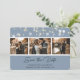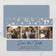 Elegant dusty blue wedding photo save the date cards with a modern script font. Easily personalize this dusty blue photo save the date with your images and wedding details including a wedding website.