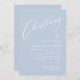Elegant Dusty Blue White Cross Boy Christening Invitation