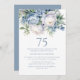 Elegant Dusty Blue White Floral 75th Birthday Invitation