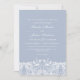 Having your Elegant Dusty Blue White Lace Wedding Invite match the theme of your party is a great detail that your guests will appreciate. The thoughtfulness of a consistent party theme is often appreciated and can show your guests that you can host a cohesive event.