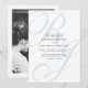 Elegant Dusty Blue White Monogram Wedding Invitation