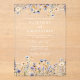 This Elegant Dusty Blue Wildflowers Clear Acrylic Wedding Invitation showcases delicate watercolor wildflowers in shades of dusty blue, purple and yellow on clear acrylic, complemented by contemporary typography. It is fully customizable with the couple's names and wedding details. The formal design and wording will add a touch of elegance to your wedding celebration.